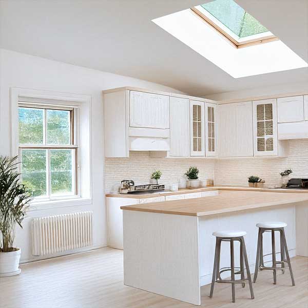 Modern and elegant, glass skylights flood your home with natural light while offering a clear view of the sky. Perfect for living areas or kitchens where style and daylight matter most.